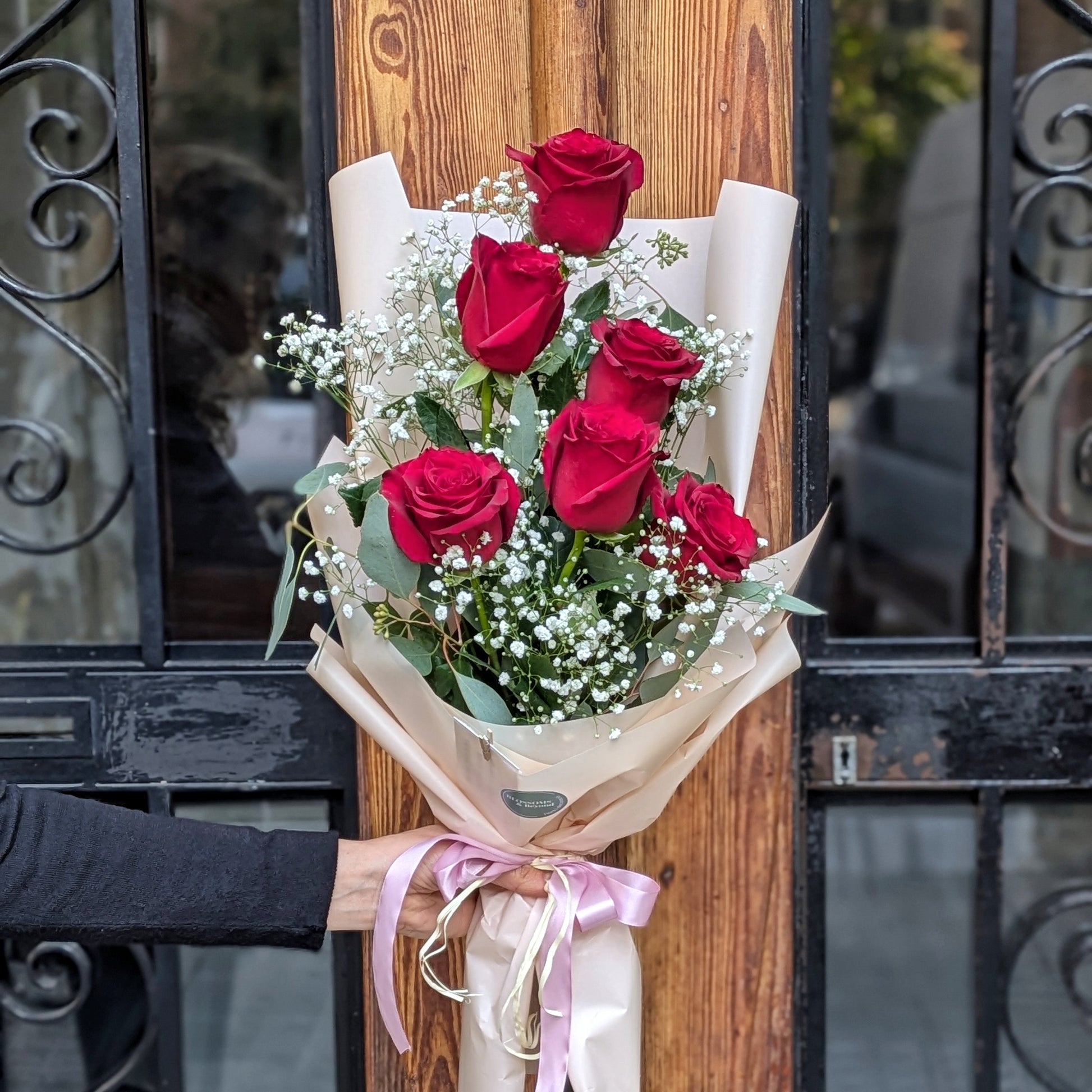 Aquest elegant ram de roses vermelles és el regal perfecte per expressar amor i passió. Amb 6 roses vermelles d'un vermell profund i vellutat, complementades amb branques d'eucaliptus i flors blanques, aquest ram transmet frescor i sofisticació. És ideal per a aniversaris, dates especials o moments en què les paraules no arriben. Sorprèn aquesta persona especial amb un regal que reflecteix elegància, romanticisme i bon gust. Perfecte per a qualsevol ocasió significativa.