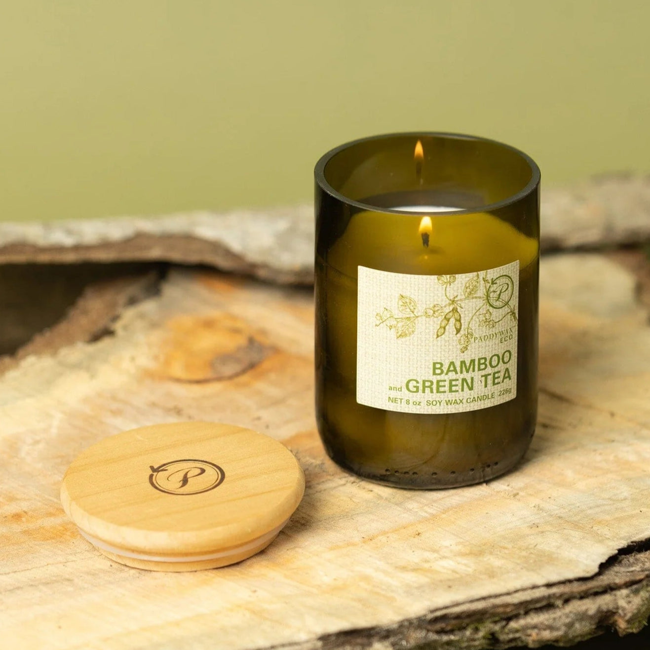 Porque ser sostenible también puede oler increíble. Esta vela combina el frescor del bambú con la suavidad del té verde, en un envase hecho a partir de botellas de vidrio recicladas.